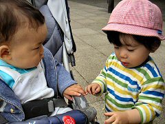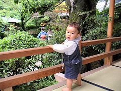 今日は与十郎さんの三回忌。パパとママの結婚式の次の日に亡くなったんだよ。だからぼくは会ったことはないんだ 親戚が黒い服を着てたくさん集まったよ。お坊さんが早口でお経を上げてお墓参りしたあと、お昼を料亭で食べました。ご飯を食べるおうちがいっぱいあるすごいところだよ!ぼくはママが持参した離乳食を食べたあと広い縁側で遊びました。