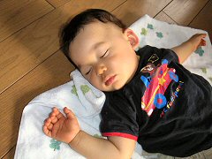 今日は離乳食を食べながら寝ちゃいました お口にごはんをいっぱい入れたまま。ママがぼくを呼んで起こそうとするんだけど、ぼくはどうしても我慢できなかったんだ。虫歯になっちゃうな〜。火曜日はプレイルームに行く日だよ。今日は居眠りのせいで早く行けなかったからちょっと物足りない。来週はプレイルームが開く10時をめざしてがんばるぞ!
