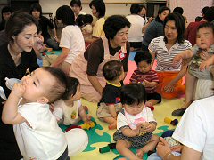 最後の赤ちゃん学級に行ってきたよ。赤ちゃん学級には0歳の間しか行けないんだ。次回もぎりぎり0歳だけど、ママの仕事が始まっちゃうから今日が最後なんだ。さみしいな。お友達のかれんちゃんやゆうかちゃんも来ていたよ。それと今日初めてアイスを食べたよ。こんなに冷たいの初めてだったからとってもびっくり その表情でみんな大うけしたよ。