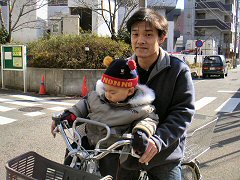 今日はサイクリングに行ったよ。のーちゃんの自転車にぼくの椅子をつけて、パパが運転したよ。近所をぐるぐる走ったよ。公園にも行って少しお散歩したんだ。風は冷たいけど防寒対策をしっかりしているから大丈夫!走っているうちに、今回も寝てしまった。いつも自転車に乗ってると寝ちゃうんだよな〜。