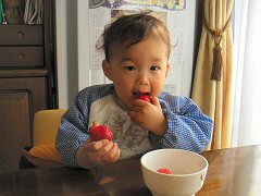 今日はバレンタインデー。ぼくはのーちゃんにいちごをもらったよ 早速食べたけどおいしかった〜。パパもママもチョコレートやお菓子をもらったよ。パパはママにクッキーと手作りのアーモンドのお菓子をもらったよ。ぼくもわけてもらっちゃった。