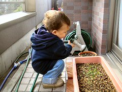 今日はパパをまねして植物に水やり。あれーうまく水が出ないなぁ パパ元栓閉めたでしょー