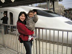 ぼくは電車が大好き。今日はパパとママと新横浜駅に新幹線を見にいったよ。ビデオでたくさん見た新幹線の本物がいっぱい来たね 時々通過電車が来たよ。すぐ近くを猛スピードで新横浜が過ぎていくのはとっても迫力があるね!ママが大喜びしていたよ(あれ?)