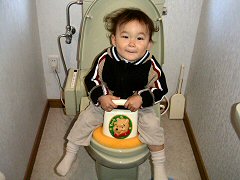 今日はパパとママはお休み。お出かけしようにも毎日寒くて…早く暖かくならないかな。今日はぼくのトイレを買ってもらったよ。大人のトイレに装着して、こうやって使うんだ。これならトイレに落っこちて下水に流される心配はないね。ぼくもそろそろおむつを卒業しないと…でもどうすればいいのか全然わからない。