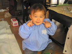 今日はママと保育園の説明会に行ったよ。初めての保育園。どんなお友達がいるんだろう。申し込みのときにあったお友達も来ていたね。説明をしている間、僕たちは保母さんと一緒に遊んでいたよ。全然寂しくなかったよ。ママはスモッグを買ってくれました。4月からこれを着てみんなと遊ぶんだ