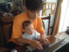 今日はパパがお休み。パパとパソコンで遊びました。それからパパとママとぼくの3人でお散歩に行きました。そのあと続けて買い物に行きました。でもぼくは途中から寝ちゃったんだ〜。
