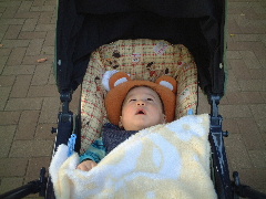 今日はとっても寒かった。鼻水もでちゃったよ〜。でも寒さに負けずに、今日もベビーカーでお散歩に行きました。まだおなかの調子がおかしいのかなぁ、うんちが3回も出ちゃった。