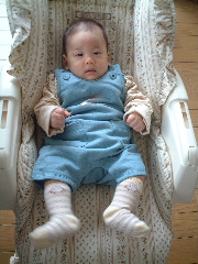 今日はおーちゃんが来てくれたよ。抱かれたら泣いちゃった。それからママとお買い物に行ったよ。スーパーでまたまた泣いちゃった。最近おなかが緩かったんだけど、直ってきたので布おむつが復活したよ。