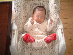 今日はしとしと雨降り。とっても寒くて、お散歩もお休みです。おうちの中で足をばたばたして遊びました。ハイローチェアーに座って、上半身はあまり動かさないで、足だけバタバタするんだよ。走るみたいにね。