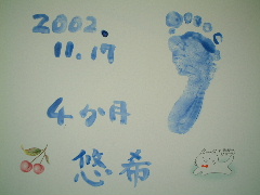 茅ヶ崎のTOTOのフリーマーケットに行きました。タイルに手形を取ってもらう予定だったのだけど、手をグーしたままで困らせちゃった。おじさんとママはあきらめて足形を取ることにしたよ。そのあと町田のお家に行きました。おーちゃんやあーちゃんを見てたくさん泣いちゃった。