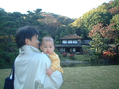 三渓園に行きました。 とってもいい天気でした。靴下がゆるくて2回も落としちゃったけどママが探してくれてよかった。あと、ガラガラを持って遊んだよ。