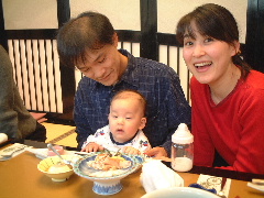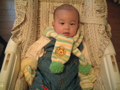 小高さん夫妻がいらしたよ。小高さんはパパとママが新婚旅行で知り合ったご夫婦なんだ。スイス仲間だね。小高さんのところにももうすぐ赤ちゃんが産まれるんだって。ぼくのほうがちょっとお兄ちゃんだね。生まれたら一緒に遊ぶんだ!手袋とマフラーをもらいました。