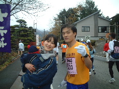 今日はパパがマラソンを走ったんだよ。ママもぼくも早く起きました。パパが走ってる間コース沿いでママと一緒に応援をしてました。たくさんの人が走っていたねー。パパは3回通ったよ。最後のときは一緒に写真を撮りました。早くゴールしなくていいのかなぁ。