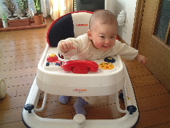 パパとママが大掃除。パパは窓を洗いました。ママは台所をきれいにしました。ぼくは暇だったので歩行器に乗って遊んでました。後ろには進むんだけどな〜、おかしいな〜。