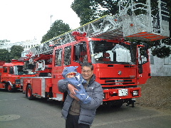 おーちゃんが来てくれたよ。ママとお買い物にも行った。ひーちゃんとママと、反町公園の出初め式に行ったよ。 消防車がかっこよかったな〜。
