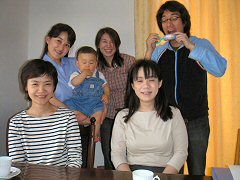 パパやママの会社の同僚が4人で遊びに来てくれたよ。いろんなお菓子やケーキをもらったね。ぼくは千代さんから白くて柔らかいくまさんのぬいぐるみをもらったよ。パパはシフォンケーキ、ママはいちごのババロアを作ってお客さんをおもてなししたよ。食べるものがたくさんあっておなかいっぱいになっちゃったみたいだね。ぼくはいつも通りの離乳食だけど。みんな来てくれてありがとう!