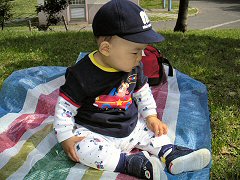 今日は早く離乳食を食べてママと朝早く買い物に行きました。とっても安い八百屋さんがあるんだよ。八百屋さんはすごい人だったね。ちょっと遠いから、帰りは飽きて寝ちゃったよ。午後はまた公園に行ったよ。レジャーシートを持ってピクニック気分。今日もしっかりあんよの練習をしました。
