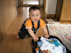 ぼくはいたずら好き。ママが洗濯しているすきに、未使用の紙おむつを出して遊んだね。でもママがクリーニング屋さんに行っている間はひーちゃんと良い子にしていたよ。ママが帰ってくる前に寝ちゃった。カタカタを使って歩くのがとても上手になりました。夕方、ちょっと半生のタマゴでじんましんが出ちゃってママ大慌て。急いで病院に行ったけど、なんとか収まりました。アレルギー体質じゃないといいのだけど。